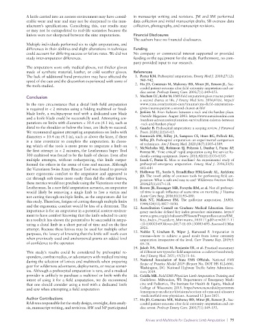 The lack of additional hand protection may have affected the 1. Porter KM. Prehospital amputation. Emerg Med J. 2010;27(12):