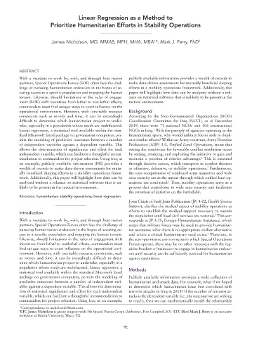 lenge of pursuing humanitarian endeavors in the hopes of se- efforts in a stability operations framework. Additionally, this