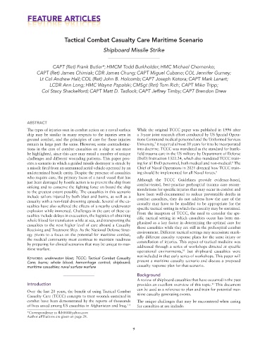 The types of injuries seen in combat action on a naval surface While the original TCCC paper was published in 1996 after
