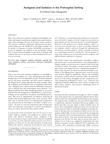tanyl; guideline; military; operational; deployed; battlefield; appropriate pain control and sedation in the prehospital/pro-