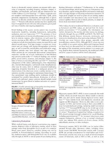 may prevent tachycardia. 1,6,20 Outward findings may include TABLE 2 Differential for Anemia by Mean Corpuscular Volume