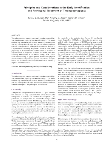 and Prehospital Treatment of Thrombocytopenia