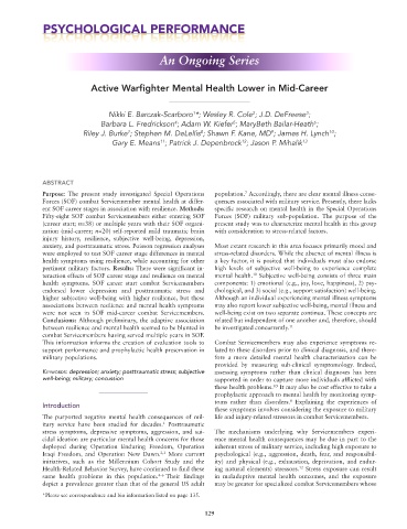 (career start; n=38) or multiple years with their SOF organi present study was to characterize mental health in this group