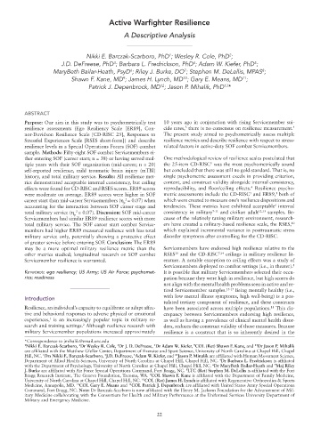Command, Fort Bragg, NC. Note: Dr BarczakScarboro is now affiliated with the Henry M. Jackson Foundation for the Advancement of Mil