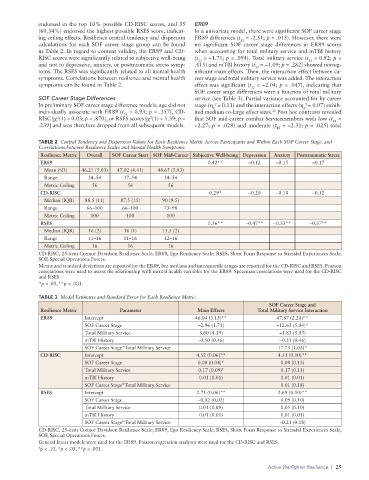 symptoms. Correlations between resilience and mental health reer stage and total military service was added. The interaction