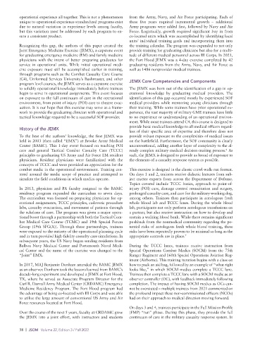 decadelong experiment and developed a JEMX at Fort Hood, Trainees then complete a TCCC lane with a SOCM medic as an