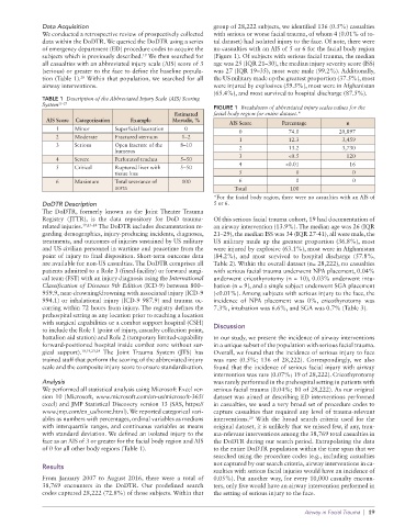 cal team (FST) with an injury diagnosis using the International underwent cricothyrotomy (n = 10), 0.03% underwent intu-