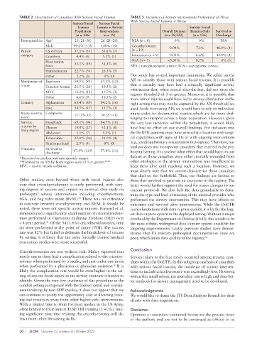 injury Gunshot wound 20.5% (28) 10.5% (2) that a casualty may have had a clinically significant airway