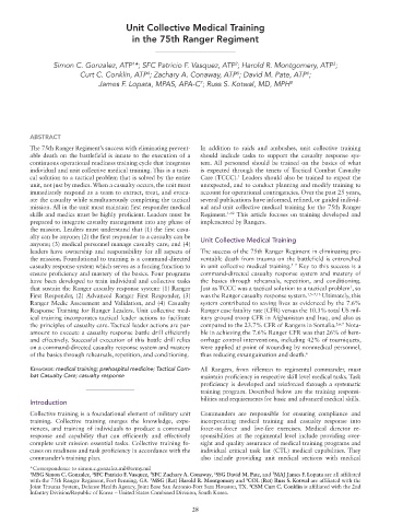 skills and medics must be highly proficient. Leaders must be Regiment. 1–12 This article focuses on training developed and
