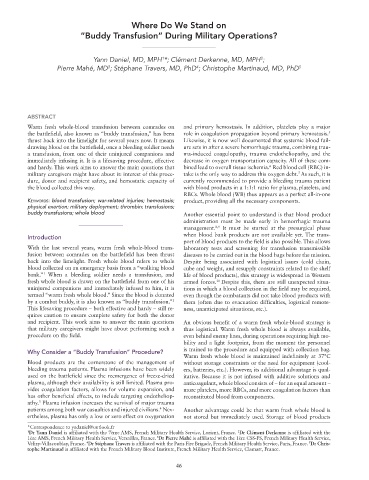 by a combat buddy, it is also known as “buddy transfusion.” them (often due to evacuation difficulties, logistical remote-