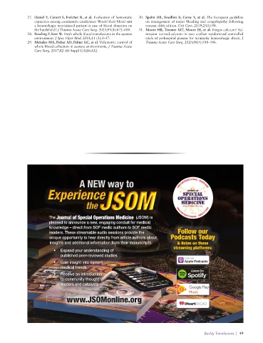environment. J Spec Oper Med. 2011;11 (3):3–37. trials of prehospital plasma for traumatic hemorrhagic shock. J