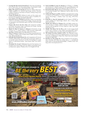 4. Bulger EM, Snyder D, Schoelles K, et al. An evidence-based pre- 13. Kotwal RS, Butler FK, Jr. Junctional hemorrhage control for Tac-