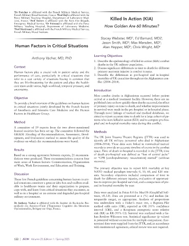 These first French guidelines concerning human factors in crit- death for different primary injuries, evaluation of opportuni-