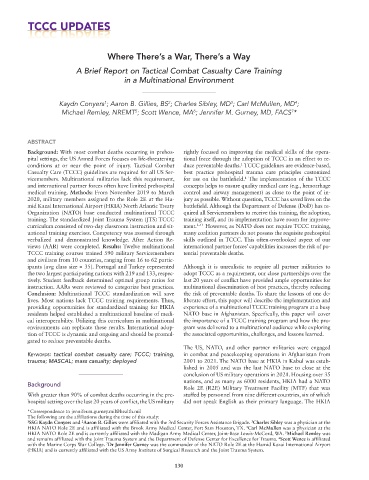 tion of TCCC is dynamic and ongoing and should be promul- the associated opportunities, challenges, and lessons learned.