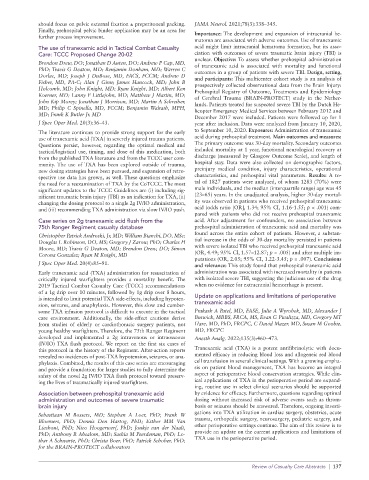 Brendon Drew, DO; Jonathan D Auten, DO; Andrew P Cap, MD, of tranexamic acid is associated with mortality and functional