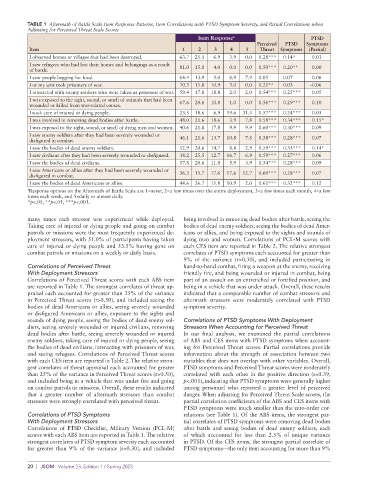 TABLE 1 Aftermath of Battle Scale Item Response Patterns, Item Correlations with PTSD Symptom Severity, and Partial Correlations when
