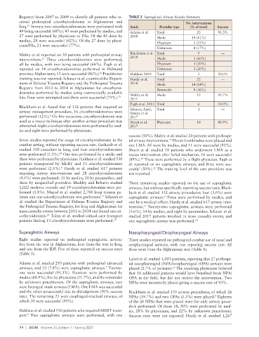 tients and one cricothyroidotomy was performed. Schauer et supraglottic airways. Three were performed by medics, and
