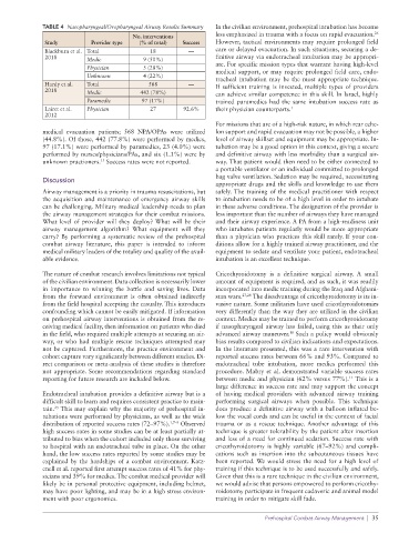 TABLE 4 Nasopharyngeal/Oropharyngeal Airway Results Summary In the civilian environment, prehospital intubation has become