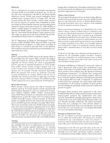 Ambulance Service (PHAS) and received prehospital blood The prehospital blood protocol was developed with collabora-