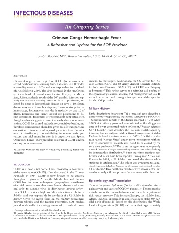 Operations Forces (SOF) providers be aware of CCHF and the ease named “Congo Virus” under active investigation with no