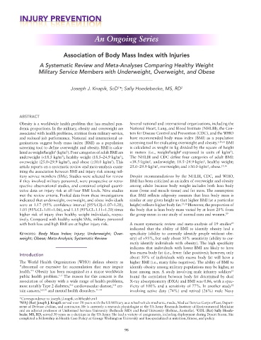 ining the association between BMI and injury risk among mil-