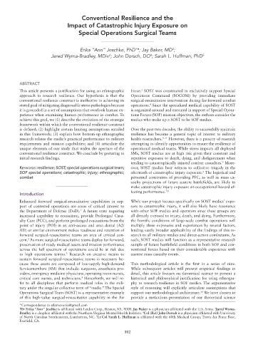 fer to all disciplines that perform medical roles in the mili- phy to research resilience in SOF medics. The argumentative