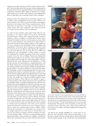 vein, the long tails were not cut from the tie to enable easy FIGURE 4 Bone saw use to complete the amputation of the right leg.