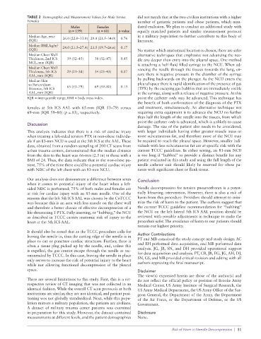 sided NDC is performed; 75% of both males and females are Needle decompression for tension pneumothorax is a poten-