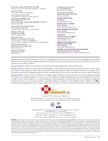 Breakaway Media’s unwavering mission for the Journal of Special Operations Medicine is to promote the professional development of the Special