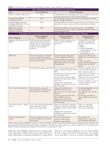 TABLE 2 Clinical Practice Guideline (CPG) and Military Training Courses Relevant to Vascular Access