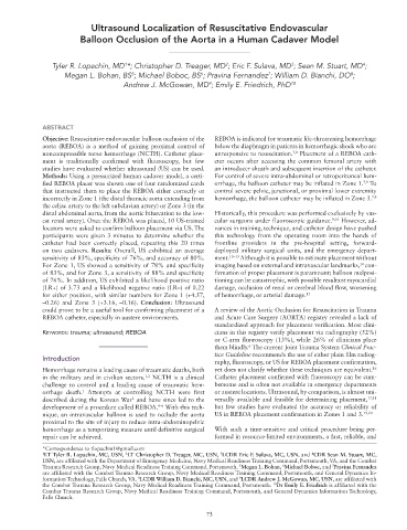 Keywords: trauma; ultrasound; REBOA cians in this registry verify placement via radiography (52%)