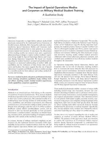 ment; training; simulation; qualitative study; military med- Ranger Regiment, Air Force, and Army Special Operation