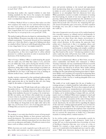 efficient medical team,” another student noted (P5). tions Medics and Corpsmen will eventually be preparing them