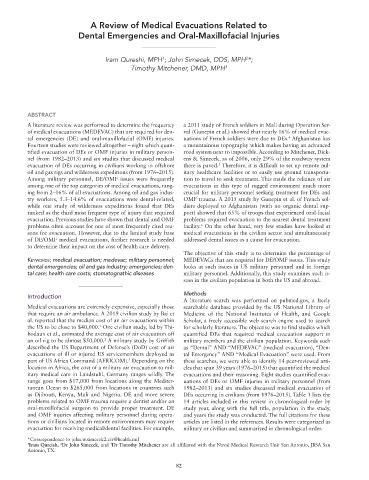 try workers, 5.3–14.6% of evacuations were dental-related, OMF trauma. A 2015 study by Gunepin et al. of French sol-