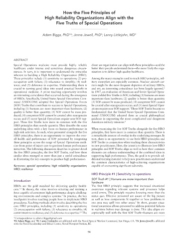 Special Operations medicine must provide highly reliable closer an organization can align with these principles—and the