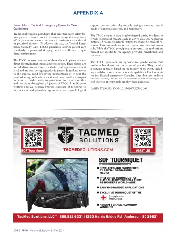 Preamble to Tactical Emergency Casualty Care support are key principles for addressing the mental health