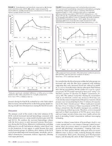 mean arterial pressure (MAP), (B) cardiac output measured by ICP was increased overall during resuscitation with infusion, averaging