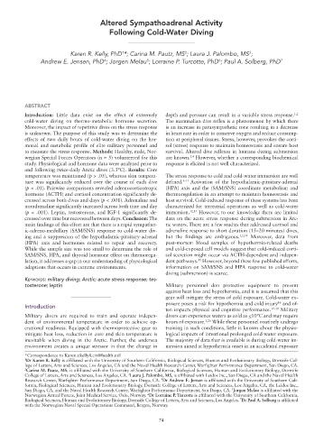 adaptions that occurs in extreme environments. information on SAM/SNS and HPA response to cold-water