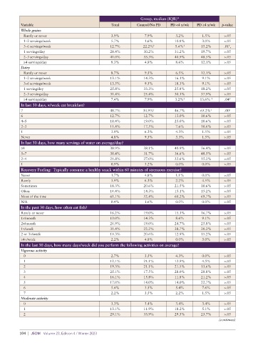 Variable Total Control/No PD PD <4 x/wk PD ≥4 x/wk p-value