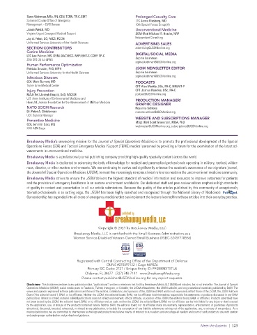 Breakaway Media’s unwavering mission for the Journal of Special Operations Medicine is to promote the professional development of the Special