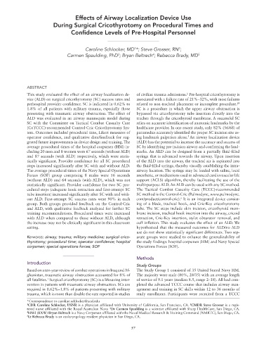 This study evaluated the effect of an airway localization de- of civilian trauma admissions. Pre-hospital cricothyrotomy is