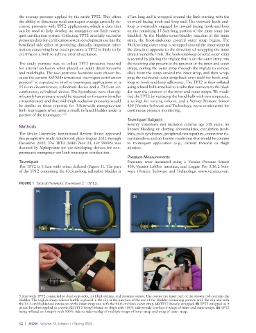 the ability to determine total tourniquet average arterially oc- outward facing hook-and-loop end. The outward hook-and-