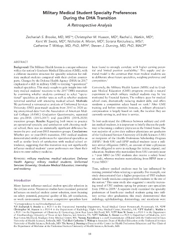 medical specialties. This study sought to gain insight into mil- Conversely, the Military Health System (MHS) and its Grad-