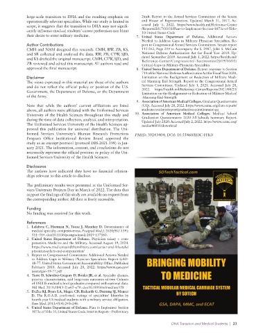 their desire to enter military medicine. 7. United States Department of Defense. Additional Actions
