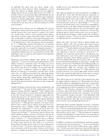 cross-reactivity. Visible clinical manifestations of allergic re- potentially owing to their less frequent use in tattooing. 19,29