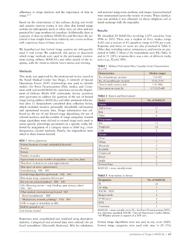 men) with real-world MASCAL experience across the Depart- Time spent on scene, hr 1.5 (0.25–48)