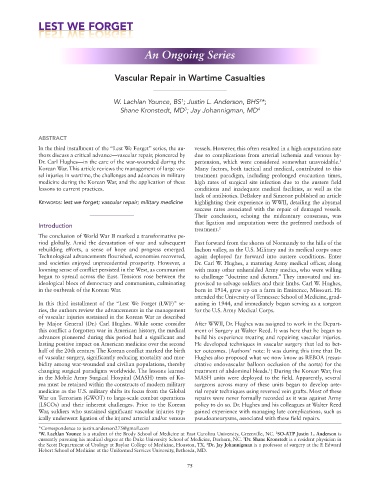 Keywords: lest we forget; vascular repair; military medicine highlighting their experience in WWII, detailing the abysmal