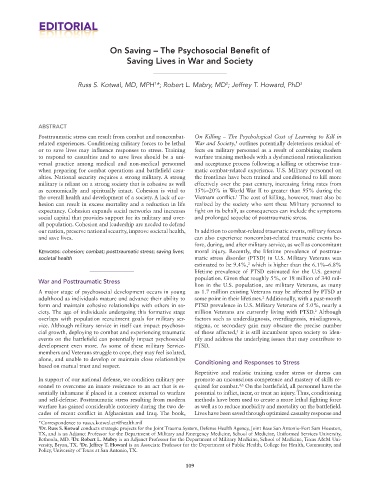 Keywords: cohesion; combat; posttraumatic stress; saving lives; moral injury. Recently, the lifetime prevalence of posttrau-