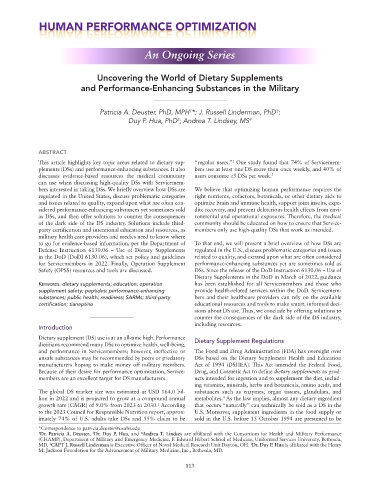This article highlights key topic areas related to dietary sup- “regular users.” One study found that 74% of Servicemem-