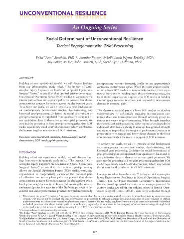 of collective loss into a pliant palliative posture that shows Injury Exposure on Resilience in Special Operations Surgical